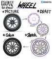 №52 Колесо — это сложно устроенная штука. Там есть диск, есть покрышка, крепление, еще может быть камера внутри. Но при этом рисовать его довольно просто. Надо начать с диска, в котором разметить линии внутреннего и внешнего обода. Потом соединить это спицами, добавить в середине круги крепления. И снаружи нарисовать шину. В шине можно сделать рисунок протектора и надписи, чтобы она смотрелась интереснее. 52 HIT C-C-COMBO!!! 🎄 -