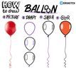 Рисовать воздушный шарик довольно просто. Вытянутый круг, узелок внизу и верёвочка. Для придания объёма можно ещё блики добавить. -