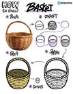 Я начинаю рисовать корзину с небольшого, приплюснутого снизу круга. Потом сверху линией вокруг рисую ручку, а снизу — тело корзины. Чтобы корзина казалась сплетённой, нужно заштриховать ручку диагональными линиями а тело — горизонтальными, а потом между горизонтальными линиями в ставить в шахматном порядке узкие вертикальные сегменты, чтобы они располагались примерно как кирпичи, только уже. -