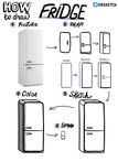 Современный холодильник на рисунке сложно отличить от шкафа, поэтому рисовать будем округлый ретро-холодильник. Начнем с двери — это прямоугольник со скругленными краями. Потом добавим объема: верхняя часть задней стенки тоже будет округлой, а вот нижнюю сделаем прямой. Остается добавить ручки и разделить двери холодильной и морозильной камеры. -