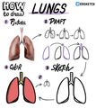 №26 Легкие нужны в основном для того, чтобы потреблять кислород из воздуха. Они состоят из примерно одинаковых частей, от которых отходят две трубки - бронхи, и соединяются в одну трахею, по которой воздух попадает в легкие. Если хочется анатомической точности, то в правом легком можно нарисовать выемку для сердца. -