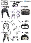 №2 Сегодня будем рисовать шапку-трансформер. Это ушанка. Если уши завязать сверху, можно ходить брутально суровым, как Шварценеггер в "Красной жаре", а если уши опустить - будет очень тепло. Сперва рисуем переднюю меховую часть шапки. Она прямоугольная, со скруглёнными краями. Дальше зависит от формы: Для тёплой версии надо нарисовать боковую и верхнюю стороны шапки и свисающие вниз уши с завязками. Для брутальной версии - загнутые вверх уши, связанные бантиком. -