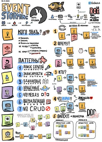 Прошел недавно обучение эвент штормингу. Это такой способ собрать требования к сложной системе с помощью стикеров разного цвета.