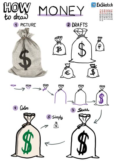 Верх мешка собран в пучок и завязан верёвкой, чтобы деньги не высыпались.