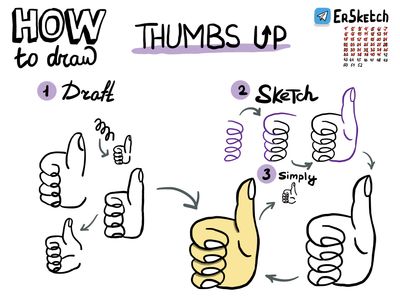 Увидел недавно в интернетах интересный способ рисовать палец вверх. Сперва рисуешь сприраль, потом дорисовываешь витки сприрали до четырех пальцев и добавляешь серху большой палец.
