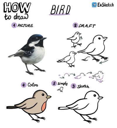 Когда крыло готово, уже примерно понятно, как нарисовать пузико: линией от клюва до серединки крыла.