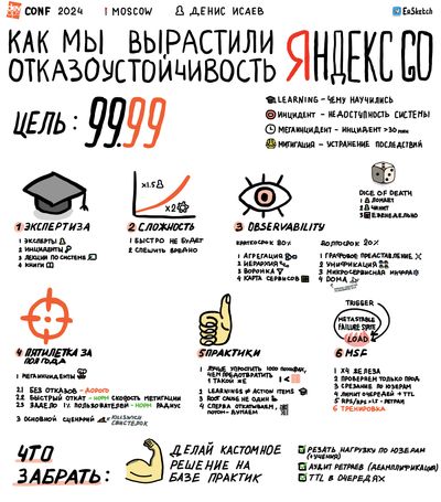 Доклад про то, как поднять отказоустойчивость не за пять лет, а за полгода. Для этого надо выбрать правильные фокусы и немного под другим углом посмотреть на классические практики, вроде определения root cause и генерации action items.