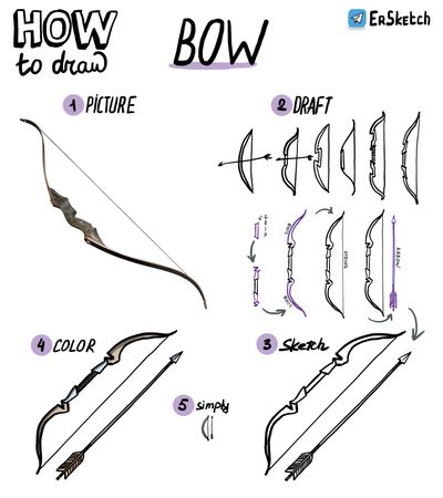 Если есть больше времени и желания, можно нарисовать композитный лук. Это лук, который состоит из разных материалов и имеет чуть более сложное строение. Такой лук будет помощнее.