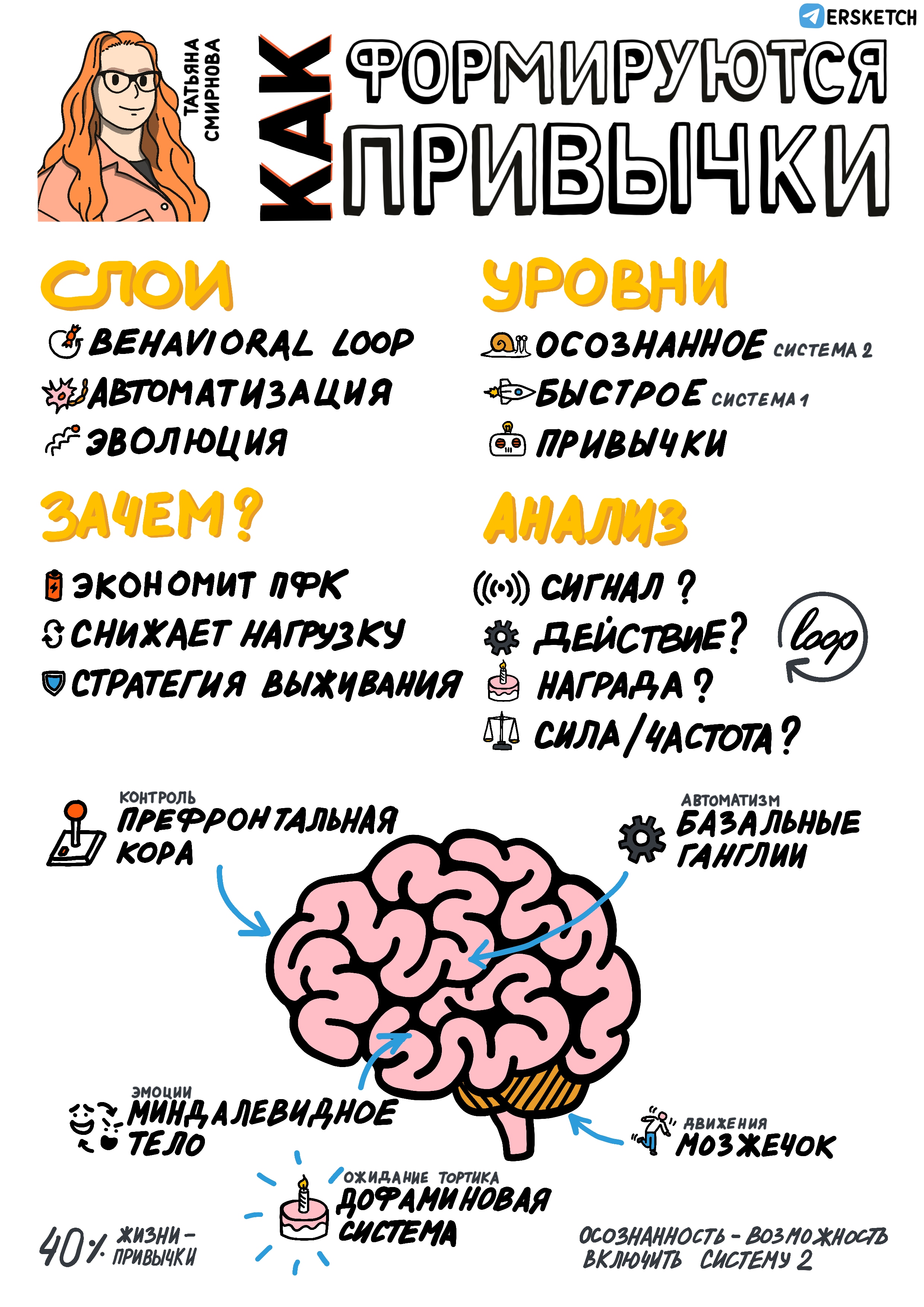 Первая лекция была про формирование привычек с точки зрения нейробиологии. Уровни мышления, зачем людям привычки и из чего они состоят.