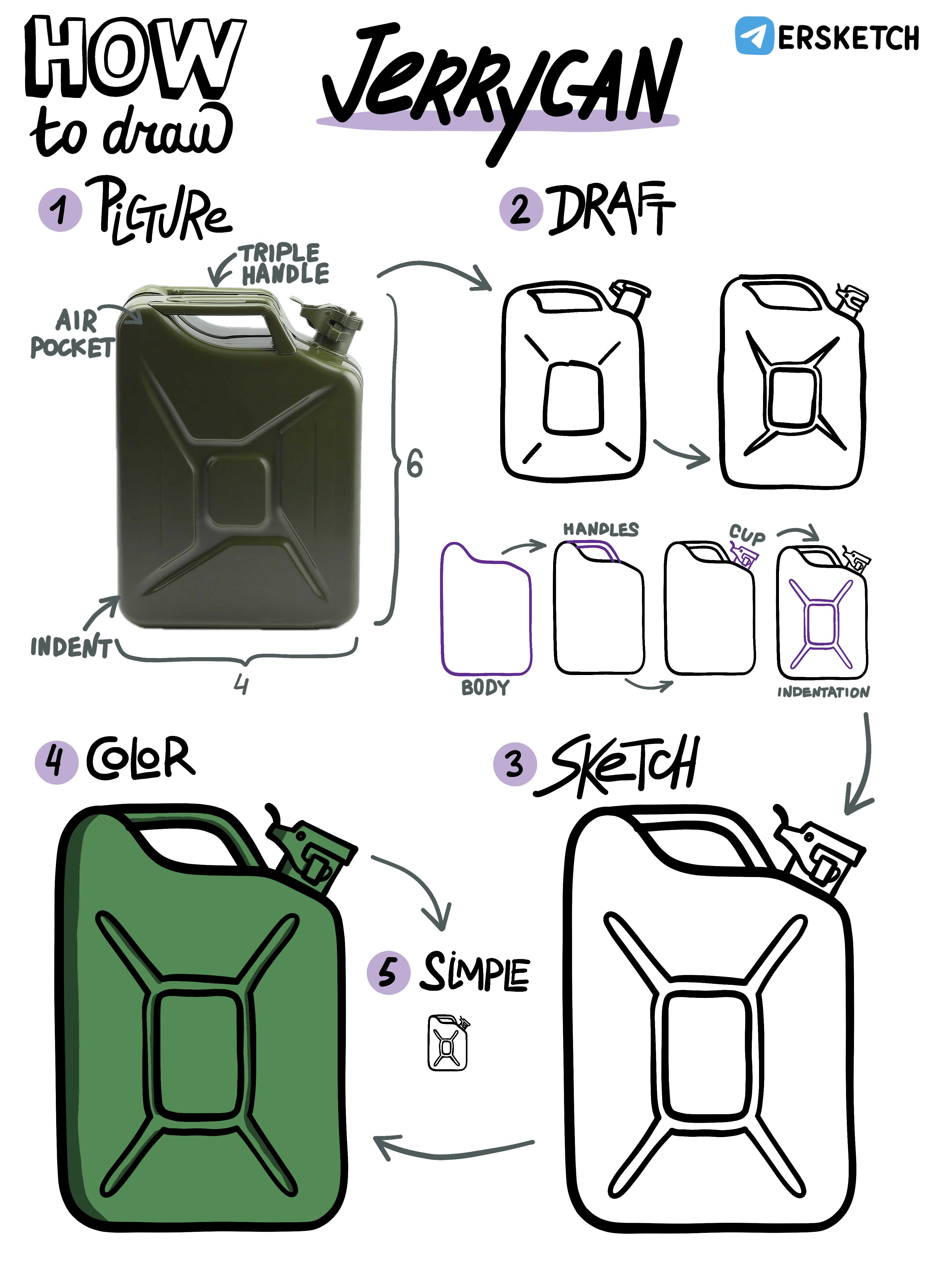 Прежде чем начнем рисовать канистру, надо про нее немного рассказать, потому что штука эта весьма интересная. Дело в том, что в ней есть много крутых дизайнерских решений.