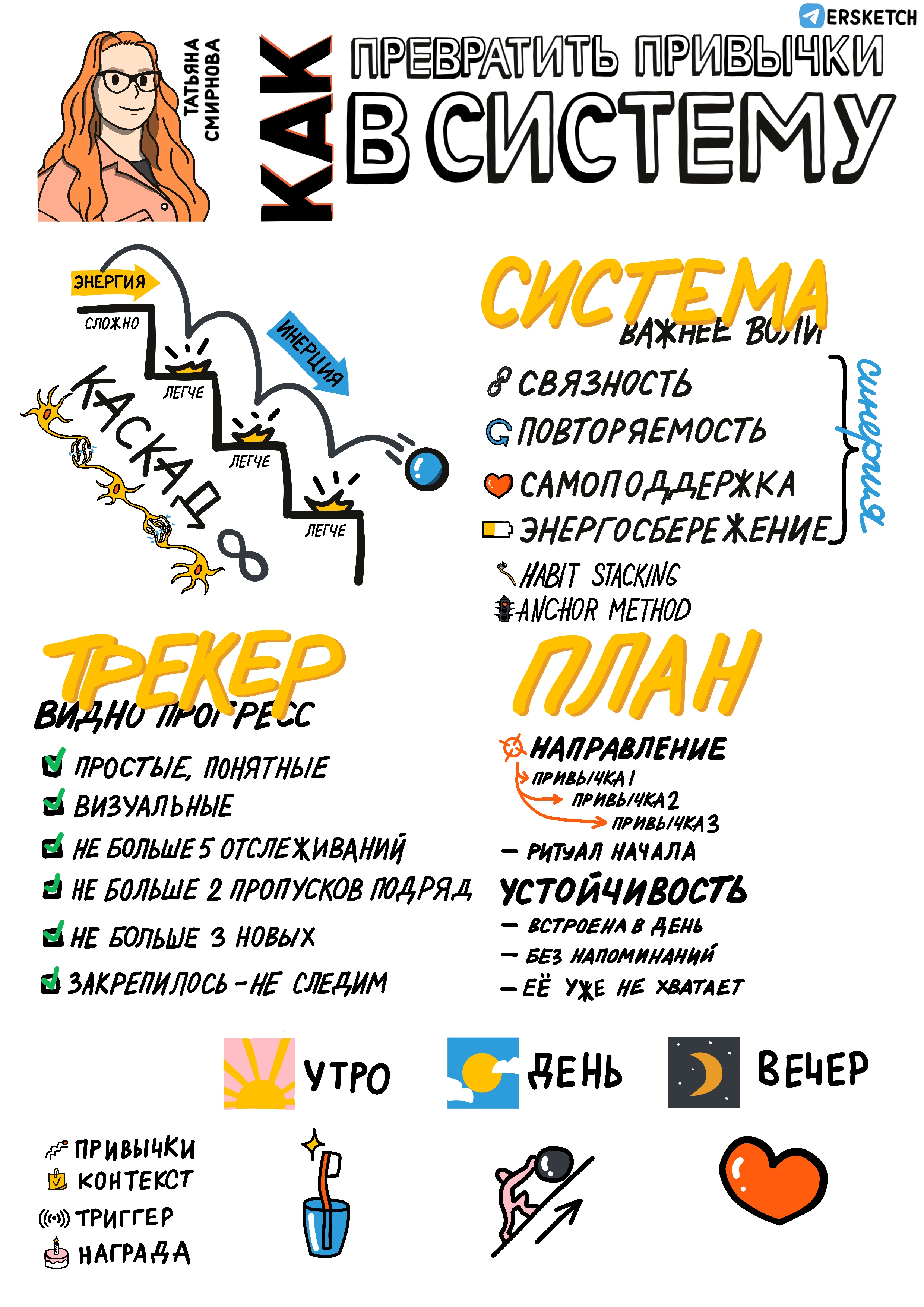 Последняя лекция из курса «Любимые привычки». Как объединять привычки в систему, так чтобы они усиливали друг-друга.