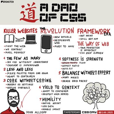 Любопытный доклад предлагает взглянуть на CSS через призму китайской философии: не жестко контролировать лейаут, а позволить ему течь свободно, как вода, гибко приспосабливаясь к окружению.