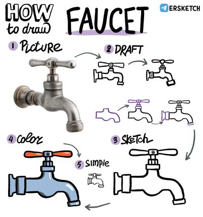 Я начинаю рисовать кран с трубки, с местом для ручки сверху и утолщением снизу. Потом нарисую ручку сверху, крепление к стене и кончик крана. Получается довольно просто.