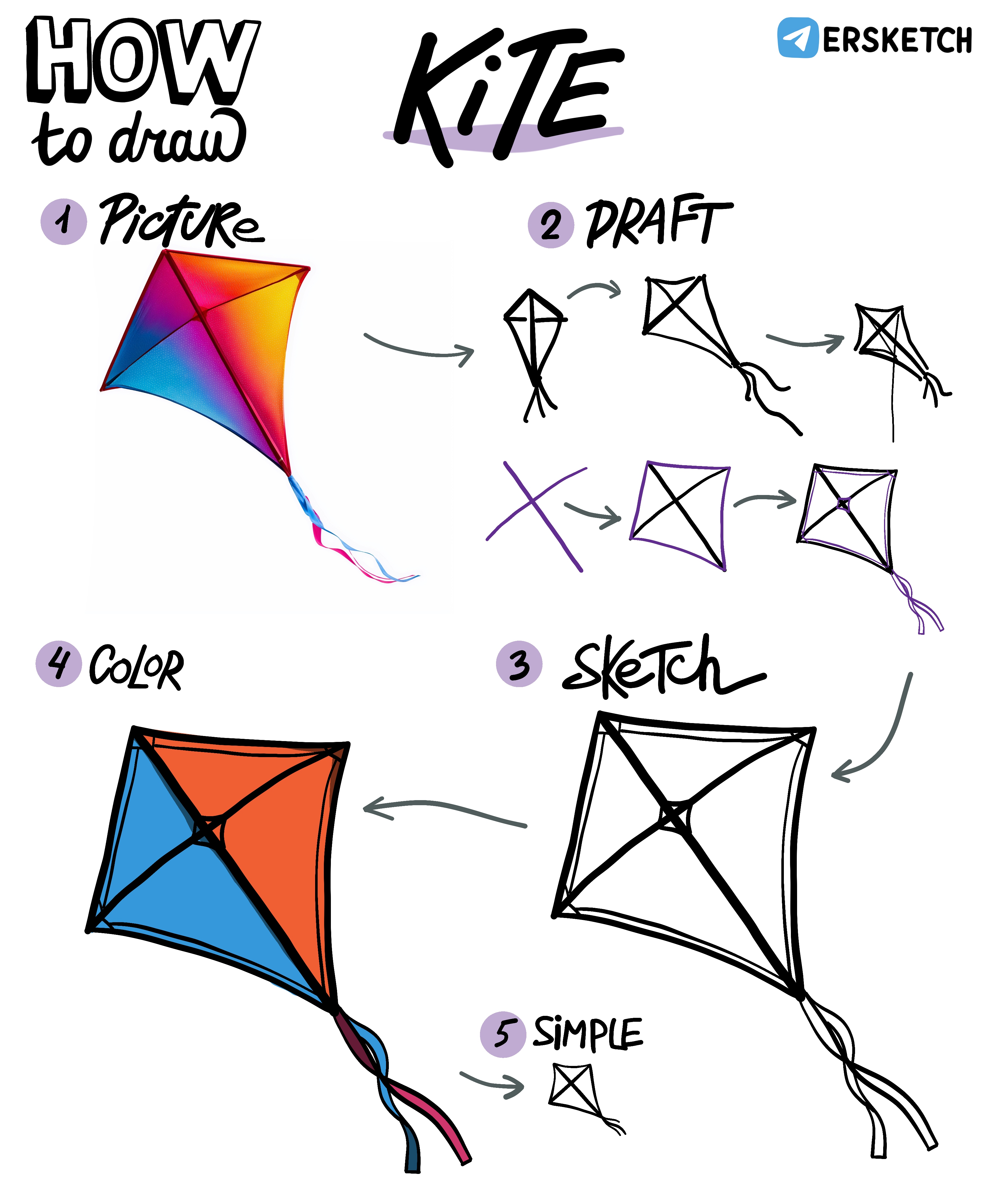 Сегодня мы рисуем воздушный змей. Его рисовать несложно, но есть некоторые хитрости.