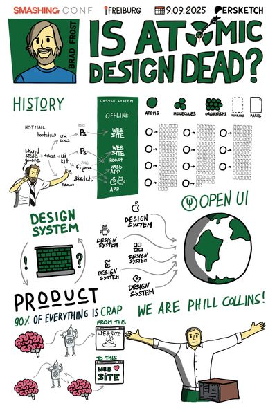 Скетчноут к докладу Бреда Фроста про то, как перестать делать свой datepicker и быть как Филл Колинз на SmashingConf.