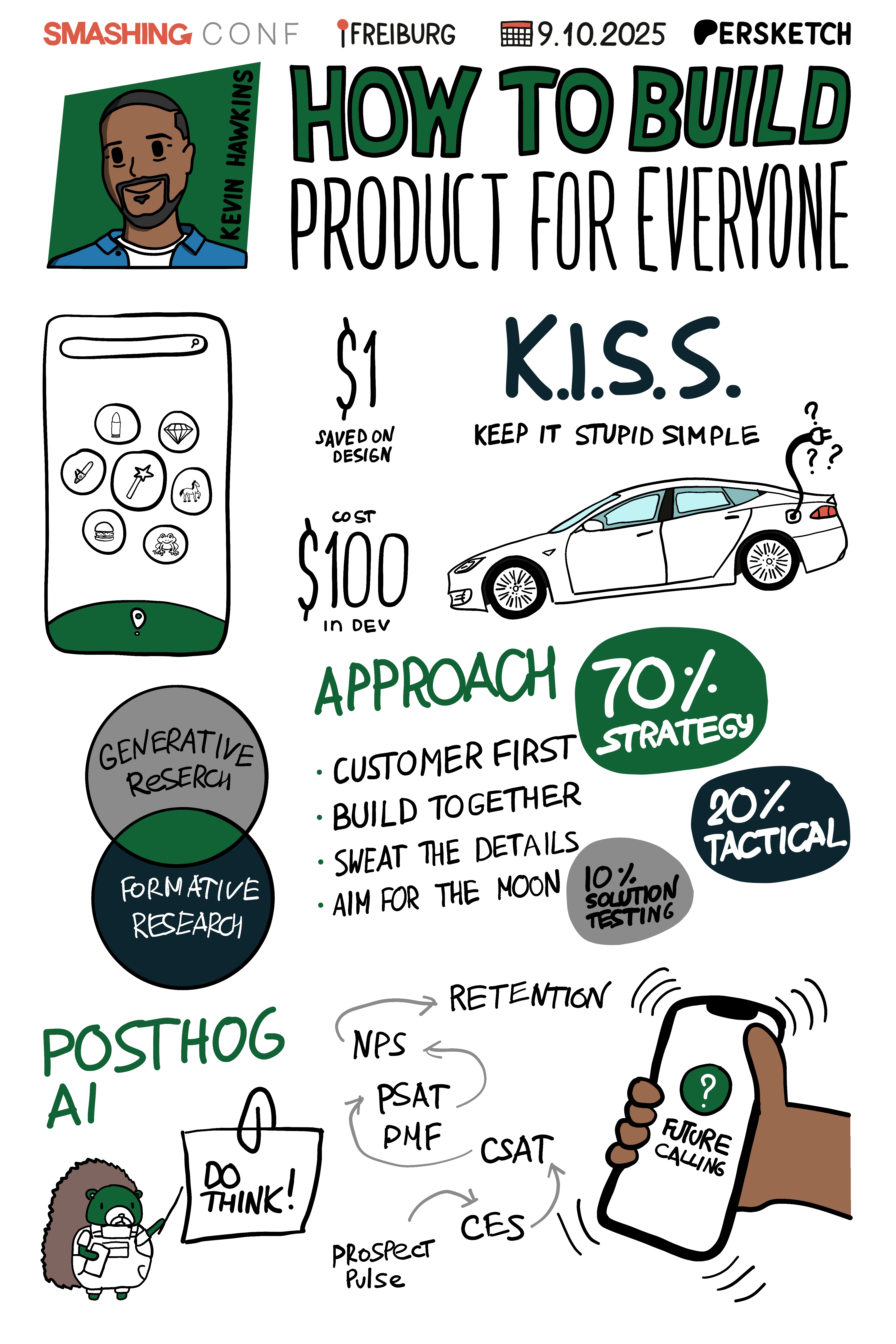 Скетчноут к докладу про то, как получать пользу от исследований от Kevin Hawkins.