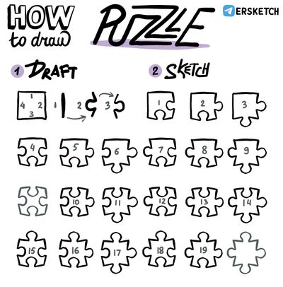 У детальки пазла четыре стороны. Каждая из них может быть либо плоской, либо выпуклой, либо вогнутой.