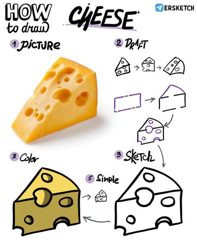 Сегодня рисуем сыр. Не у каждого сыра есть дырки, но именно дырки с лёгкостью превращают неизвестный ломоть чего-то в ломоть сыра, поэтому будем рисовать сыр с дырками.